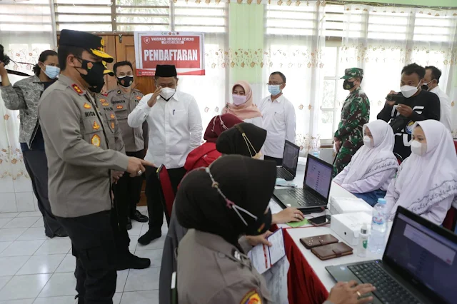 Suarajatim.com - Kapolda Jawa Timur Irjen Pol Nico Afinta bersama Pejabat Utama Polda Jatim, melakukan pengecekan pelaksanaan vaksinasi, pada Rabu (1/9/2021), di SMAN 1 Kabupaten Gresik. Kegiatan ini bertujuan untuk mendukung program pemerintah dalam membentuk herd immunity di Jawa Timur.